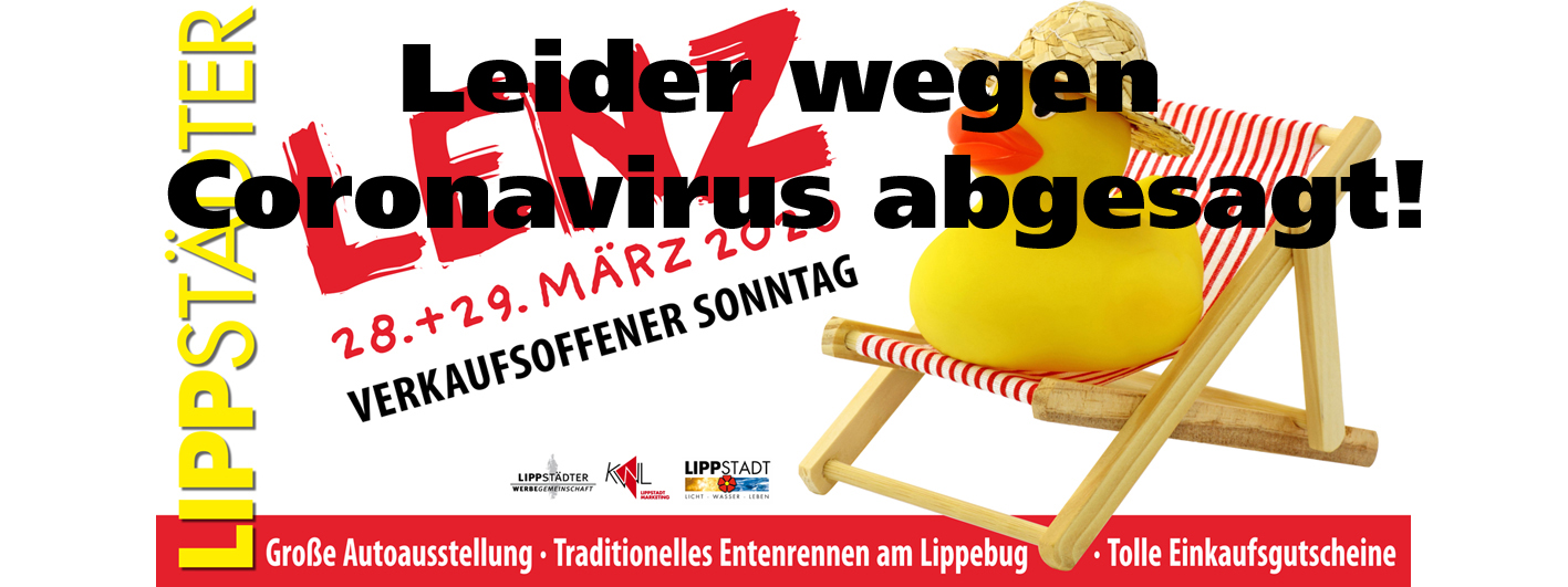 Laut Erlass der Landesregierung sind Veranstaltungen, zu denen mehr als 1.000 Personen erwartet werden, abzusagen bzw. müssen ohne Zuschauer stattfinden. Die Stadt Lippstadt musste aufgrund dessen eine Untersagungsverfügung für die Veranstaltung „Lippstädter Lenz am 28. und 29. März 2020 aussprechen.