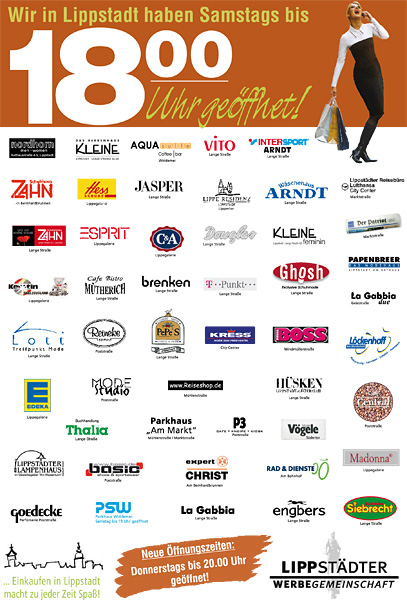 Die Geschäfte der Lippstädter Werbegemeinschaft sind für Sie da! Jetzt auch donnerstags bis 20 und samstags bis 18 Uhr. Das ist Einkaufsspaß pur!!