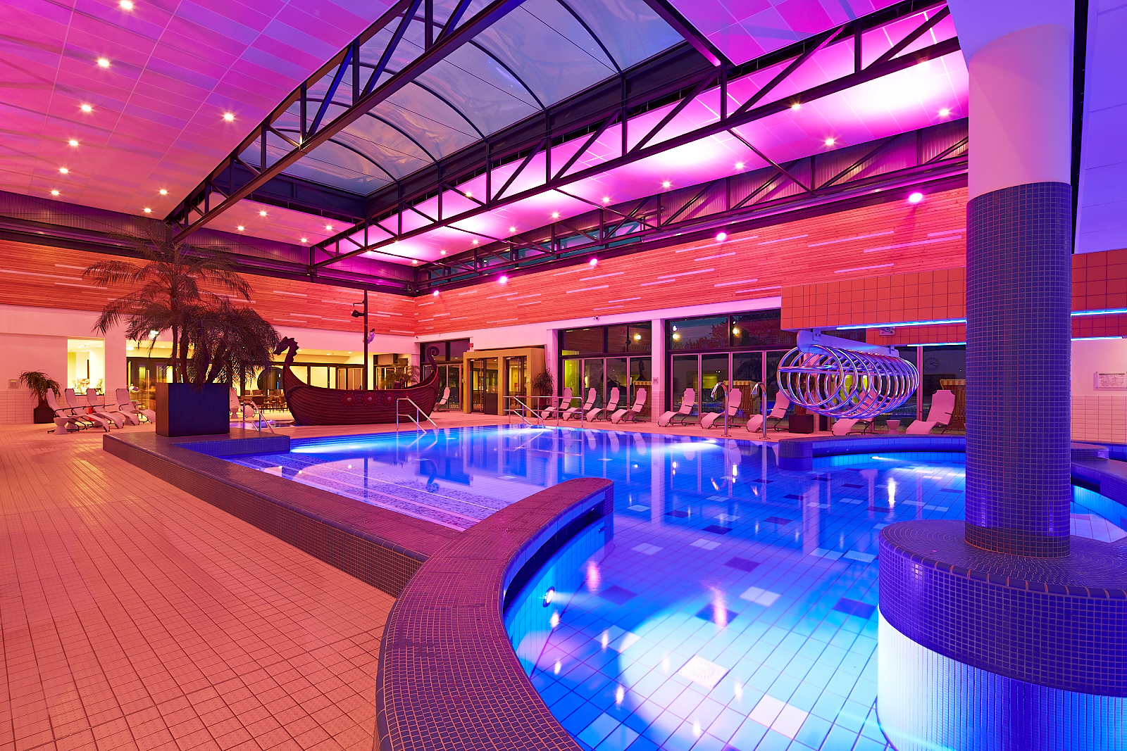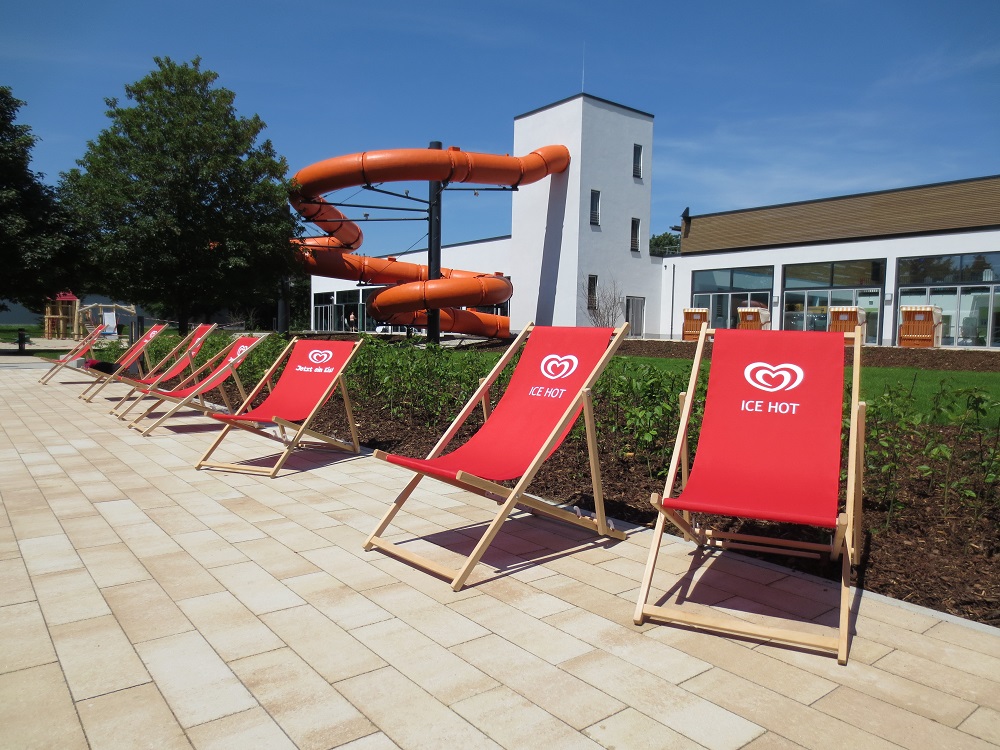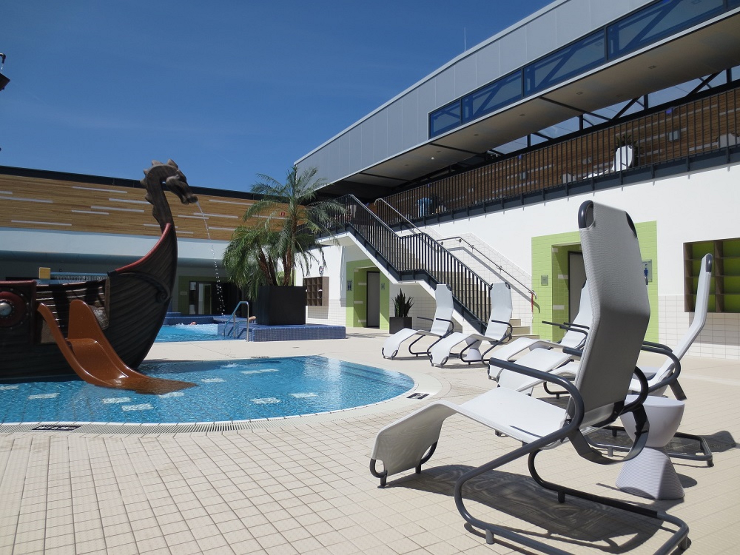 Na, im Außenbereich gibt es auf über 10.000 qm viel zu entdecken: das Sportbecken mit Sprunganlage, den Spray-Park, den Kinderspielplatz sowie den Beachbereich mit Soccer- und Volleyballfeld, Sonnenterrassen und vieles mehr...